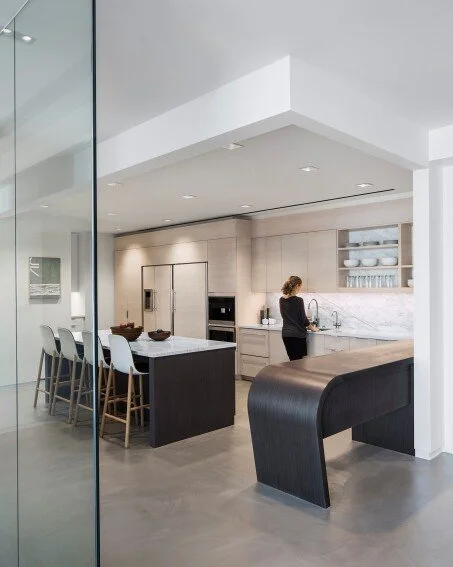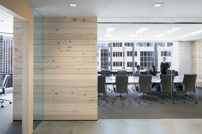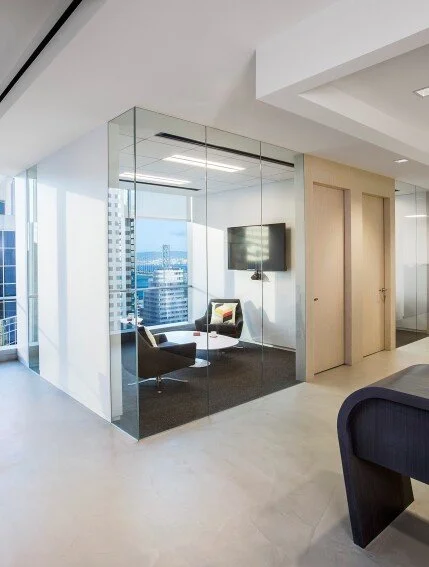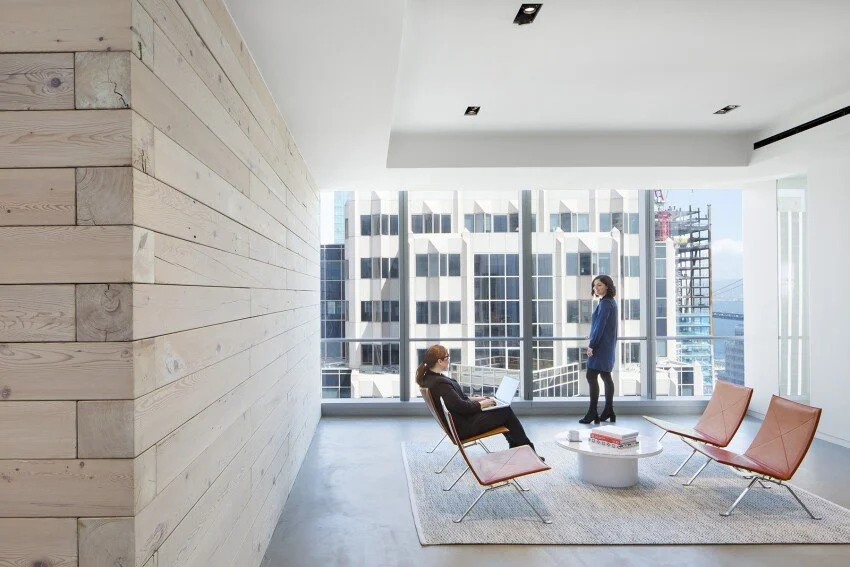 As the interior designer for this project, I played a key role in creating a refined yet inviting space that prioritizes the visitor experience. Inspired by the firm’s tech-driven culture, the office is flexible, collaborative, and transparent. A concierge-style reception welcomes guests with comfortable seating and panoramic city views, while warm hemlock timbers contrast with sleek white walls and exposed concrete floors. Coordinating closely with structural engineers and the contractor, I navigated the logistical challenge of transporting and installing solid hemlock timbers up 18 stories. Glass-enclosed offices and conference rooms maximize natural light, and a central pantry doubles as a workspace. Designed for fluid use, unassigned offices accommodate frequent visits from team members and clients, fostering dynamic interactions in an elegant, high-tech setting.